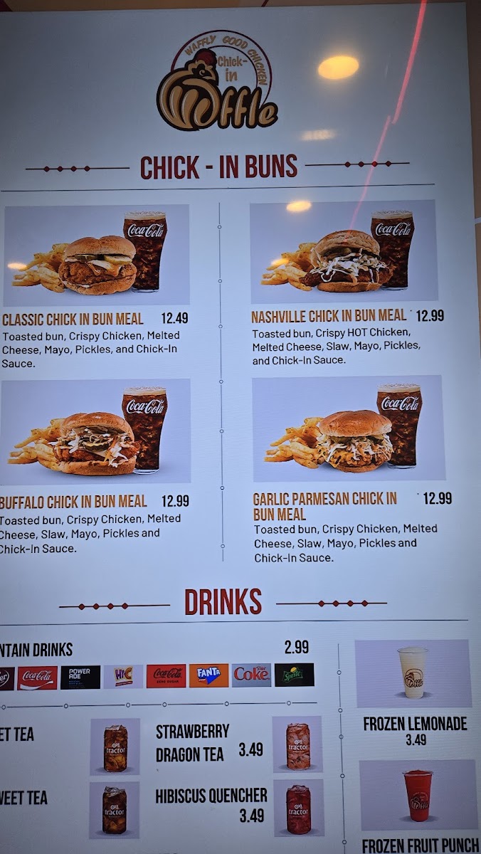 Our Fresh, juicy, and delicious chick-in buns, are served with chick-in sauce, and a large side of fries.