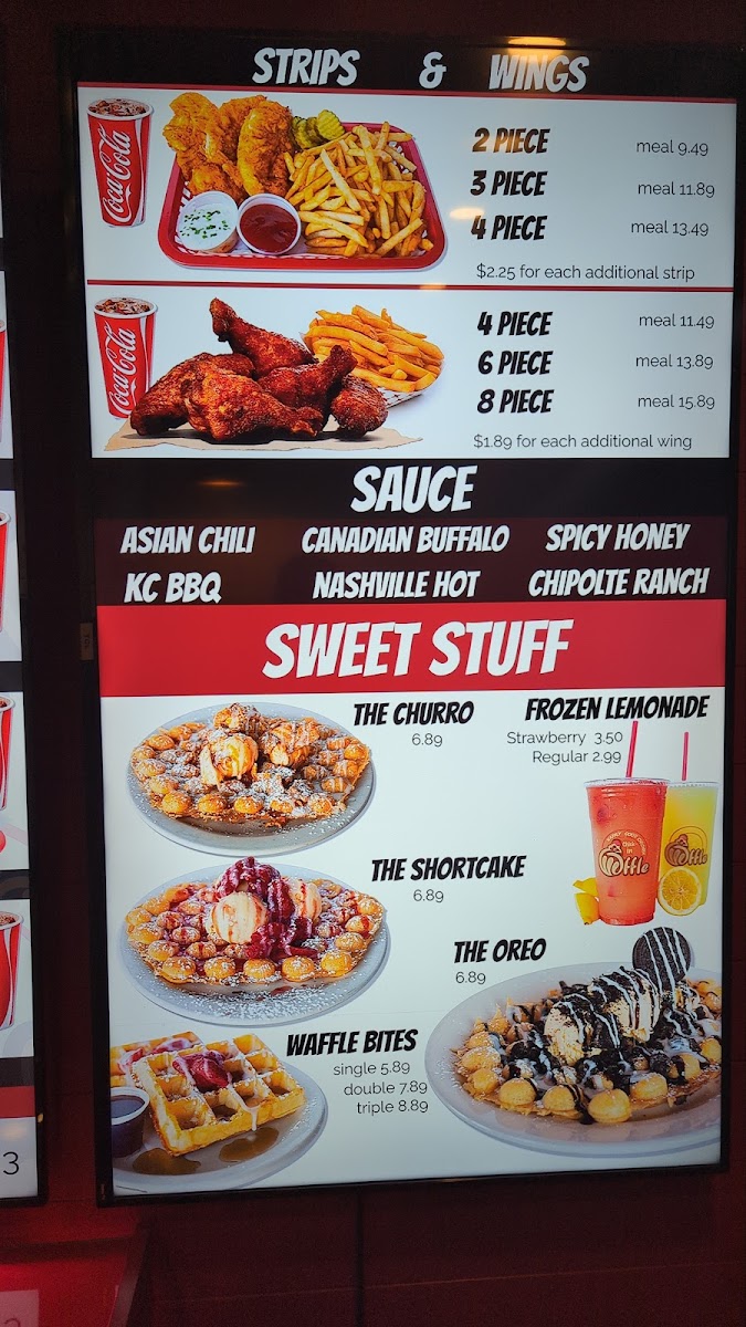 2 Strips $10.99 | 3 Strips $13.99 | 4 Strips $16.99 • Crispy hand-breaded chicken strips with our signature chick-in sauce, pickles, fries, and a drink.